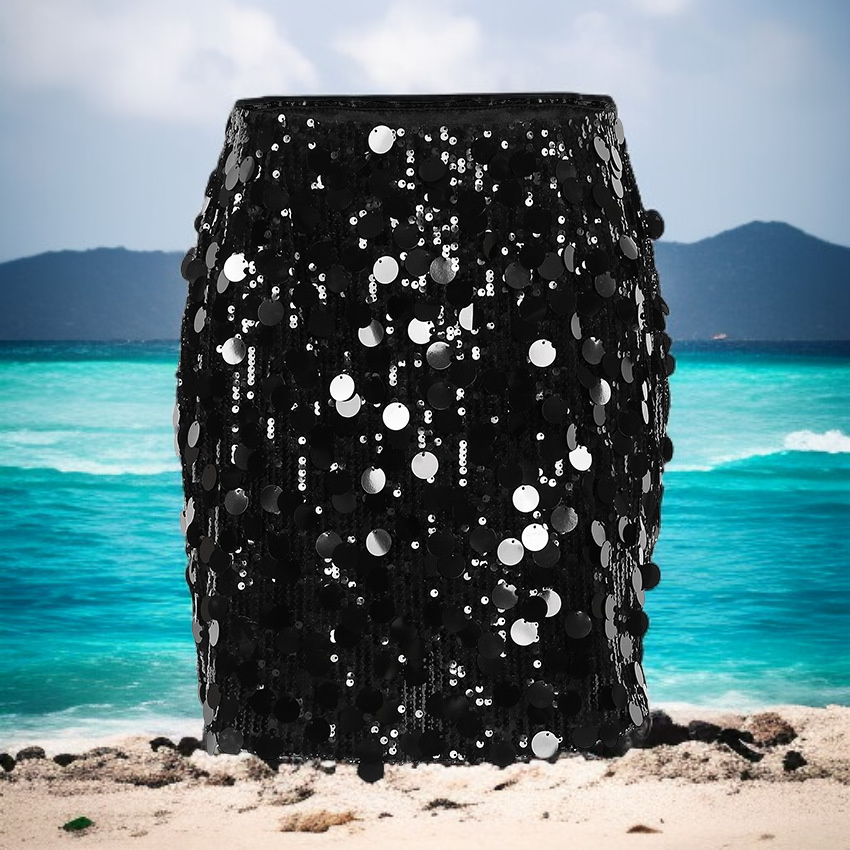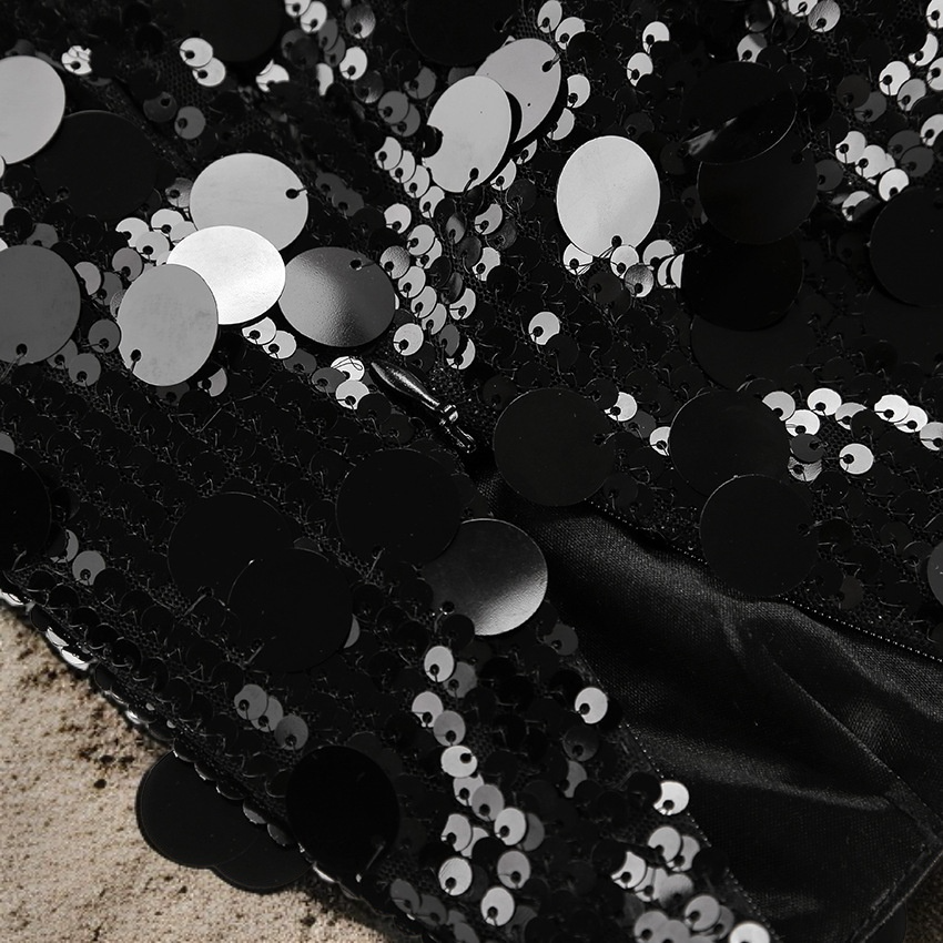 하이웨이스트 솔리드 컬러 스팽글 스커트